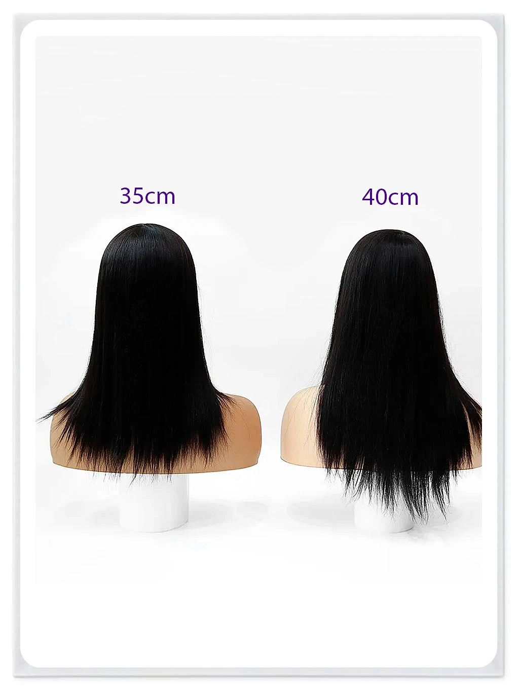 - Cantidad de cabello: 150% de densidad de hebras de cabello, como en las imágenes . (Esto se refiere a la cantidad de cabello que se agrega y percibe en la peluca, siendo este porcentaje medido entre 130% de densidad que representa la cantidad de cabello que naturalmente y más cómoda se observa en el general de las personas, y 150% de densidad que representa la cantidad de cabello que naturalmente tiene alguien con mucha densidad de cabello)