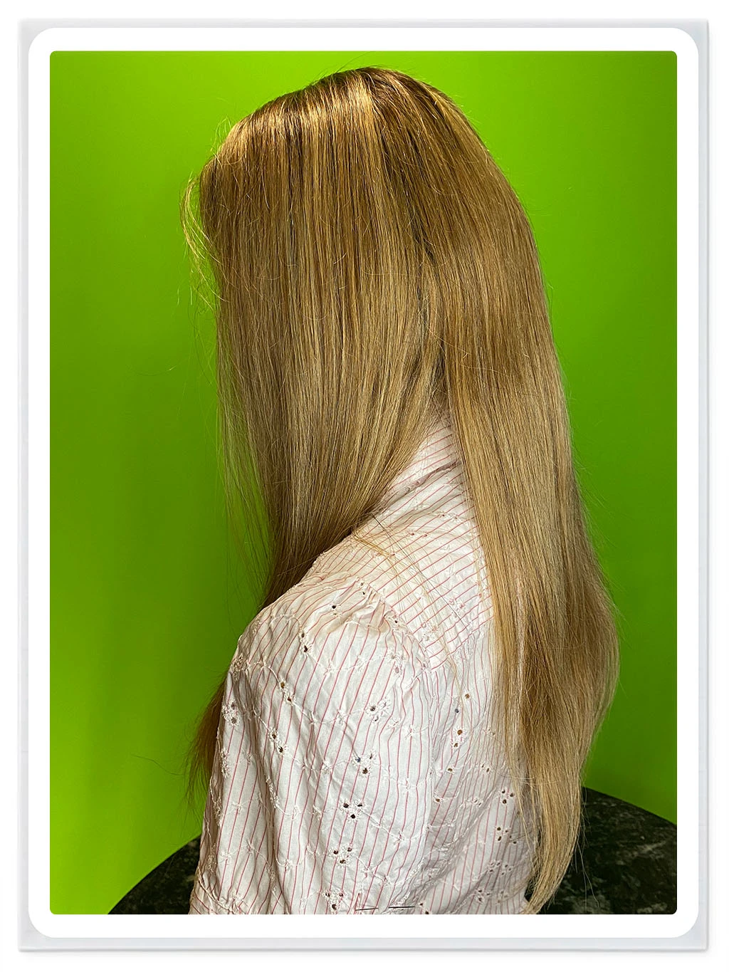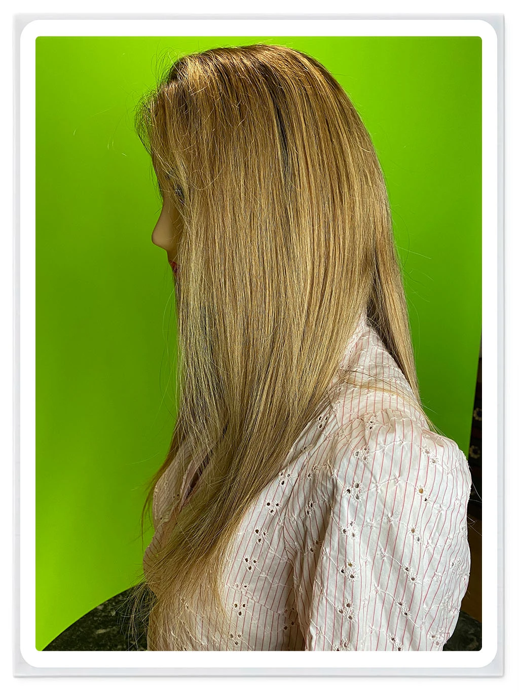 -Cantidad de cabello: 130% de densidad de hebras de cabello, como en las imágenes (Esto se refiere a la cantidad de cabello que se agrega y percibe en la peluca, siendo este porcentaje medido entre 130% de densidad que representa la cantidad de cabello que mayormente se observa en el general de las personas, y 150% de densidad que representa la cantidad de cabello que naturalmente tiene alguien con mucha densidad de cabello)